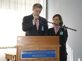 O governador do Distrito 4420, Marcos Zanardo, acompanhado de sua esposa Maria Laiz, elogiou e agradeceu a contribuição do agregador Ivo Miguel por seu trabalho no clube, em especial pelo desenvolvimento do quadro social, engradecendo ainda mais o Rotary.